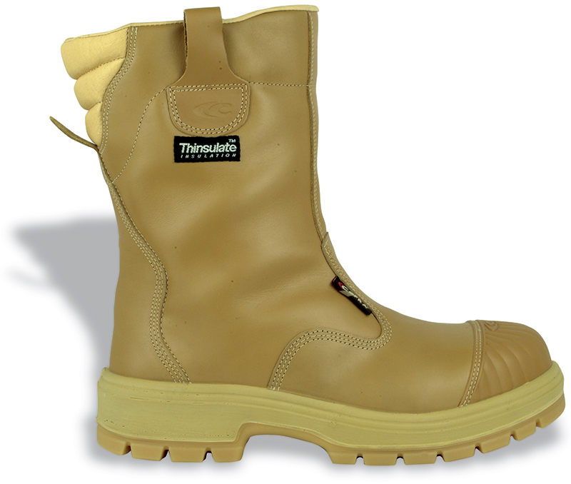 Rigger en piel flor hidrófuga, color beige, con forro en Cambrelle?, antiestático,